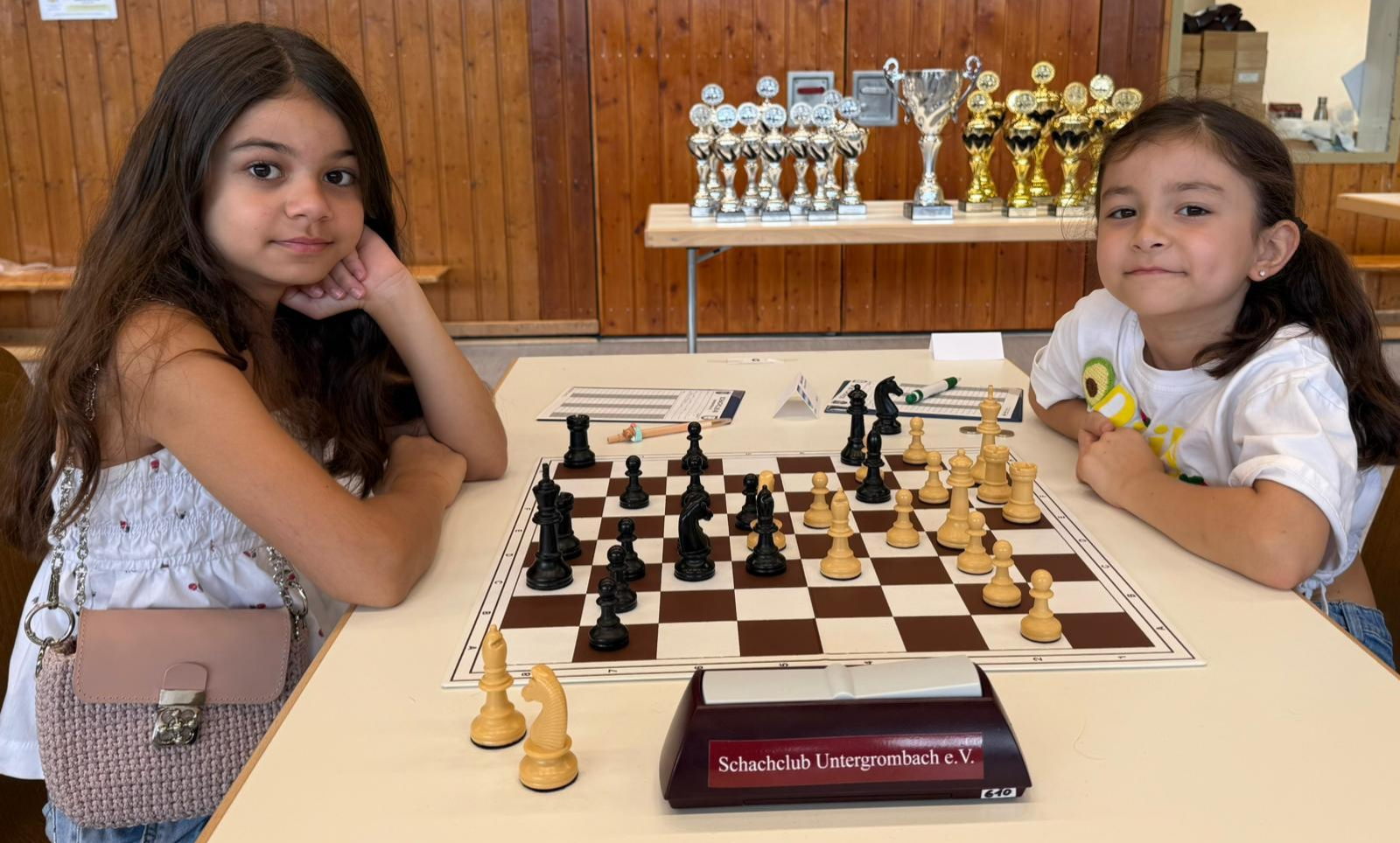 Im B-Turnier des diesjährigen Untergrombacher Jugendopens punkteten sowohl Aiza als auch Adelina Morozova. Aiza (links im Bild) holte 2,5 Punkte aus 5 Partien und war damit dort sechstbeste in der U12, Adelina (rechts im Bild) wurde mit 2 Punkten viertbeste in der U8.